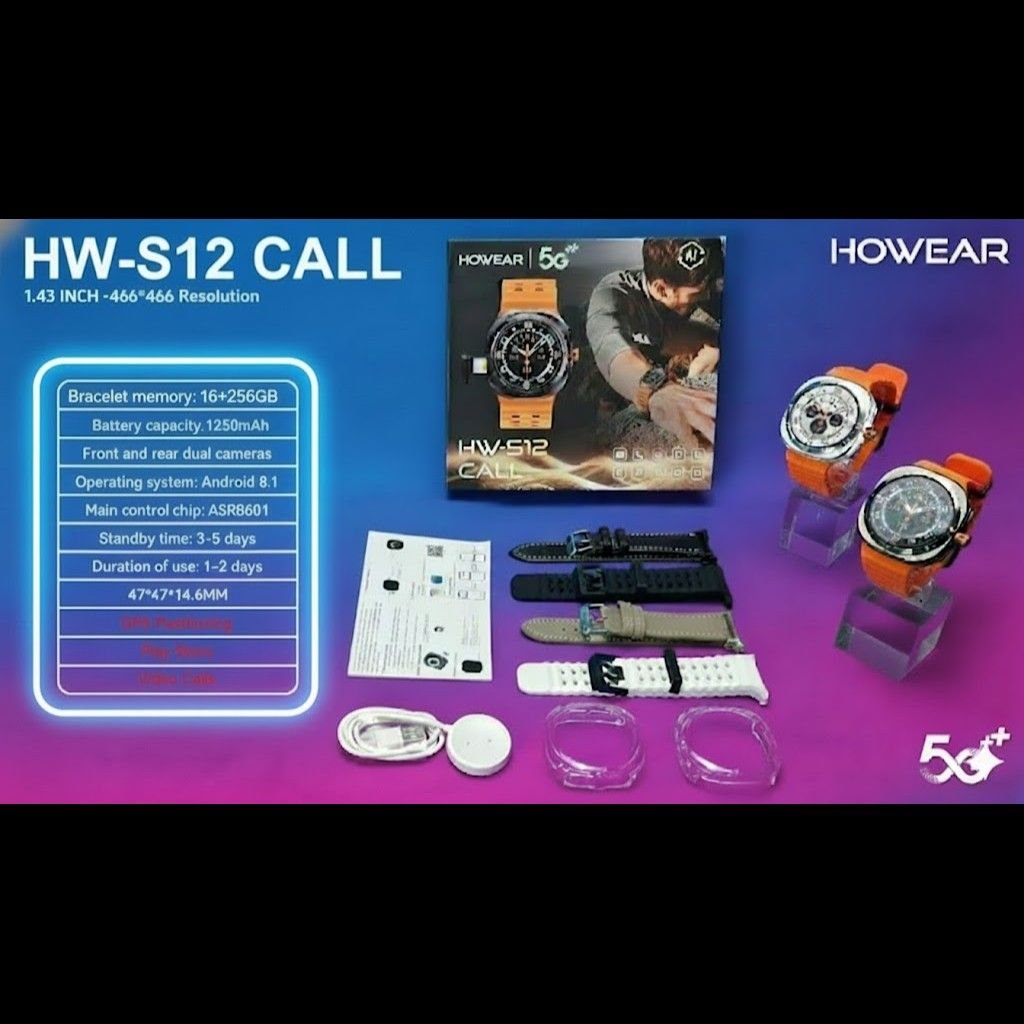 Redefine your wearable experience with the HW S12 Call Ultra 5G Android Smartwatch—a cutting-edge device that brings smartphone-level performance to your wrist. Engineered for professionals, tech enthusiasts, and fitness-focused users, this smartwatch combines sleek aesthetics with powerful internals to keep you connected, productive, and healthy throughout the day.